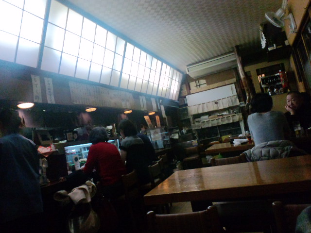 とは言うものの・・・昼時という事もあったが、有名店だけに人が入れ替わり立ち替わり。店のオバチャンも手慣れていて、客が食券ボタンを押すか押さないかのタイミングで「そば」か「うどん」を聞いて来る。と、食券を渡して10秒、いや5秒も経たない内に、というか間髪入れずにという表現が相応しいレベルの超ハイスピードで注文品が出て来るのである。いくら”早い”が第一の立ち食い屋とはいえ、自分の人生において、ここまで速く注文品が出て来る立ち食い店は経験した事が無い。だから水を入れている暇も無い。良く言えば全く待たずに喰いものに有り付けるという事だろうが、反対の意味を考えると単に慌ただしいだけという・・・。