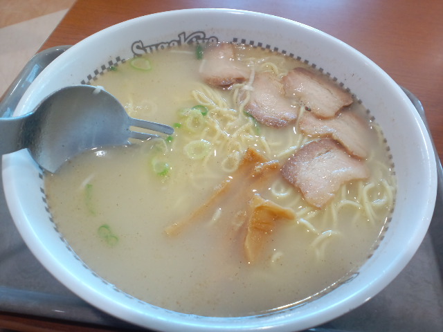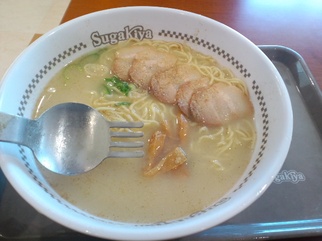 しかも、100円増しで麺とスープが1.5倍というんだけど、どう見ても麺の量が増えたためにスープの嵩が上昇しているだけのようにも思えるが・・・このアバウトさがスガキヤの魅力でもあるのだ(ホントかよ)