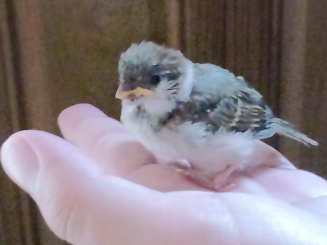自分らが保護した雛鳥は、どうやら巣立ち雛かもしれない、という事。結構羽根も毛も生え揃って、まだあどけなさ抜群だけど、ネット上の巣立ち雛の写真を確認したら、・・・やはり巣立ち雛っぽい。